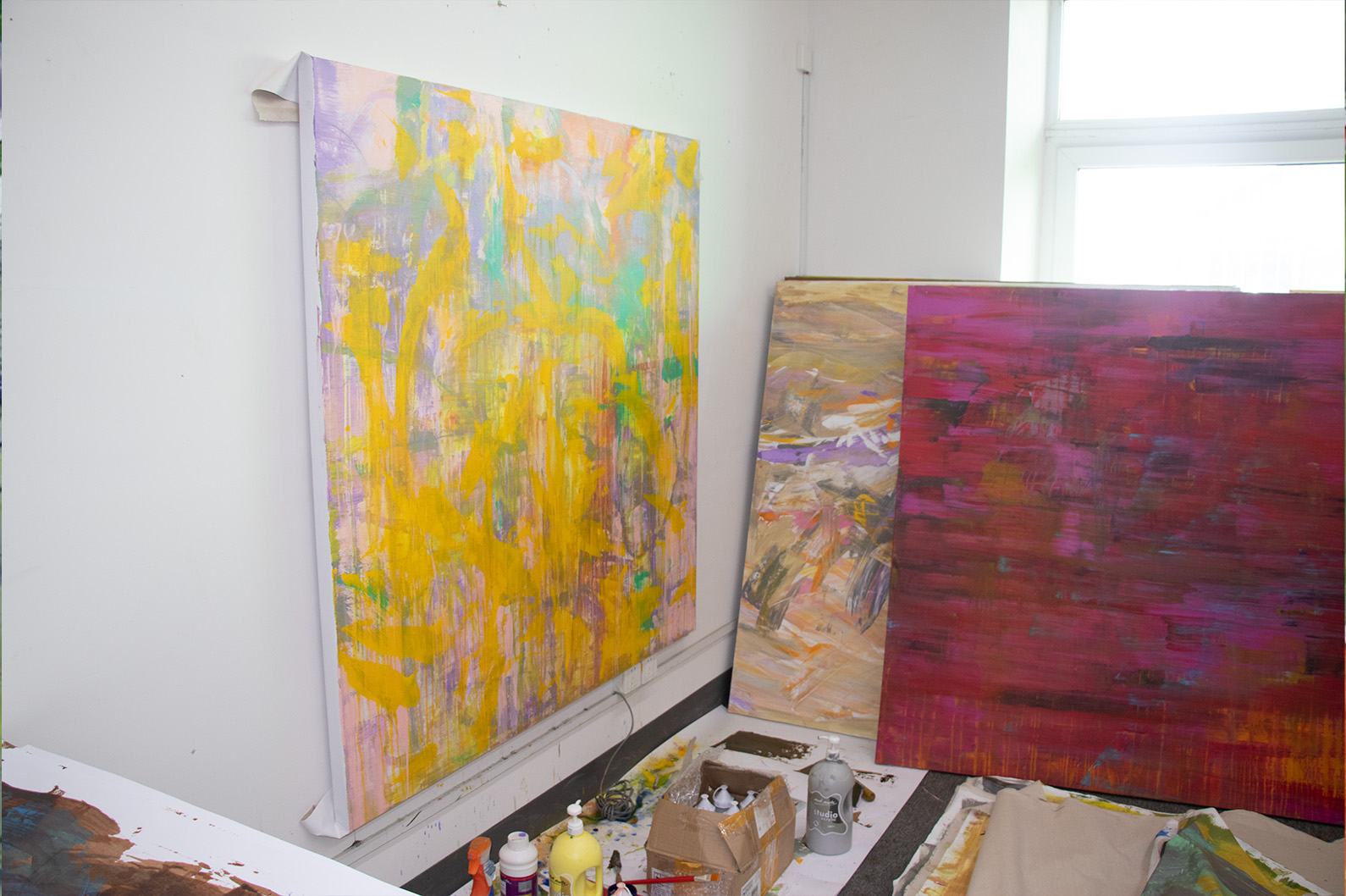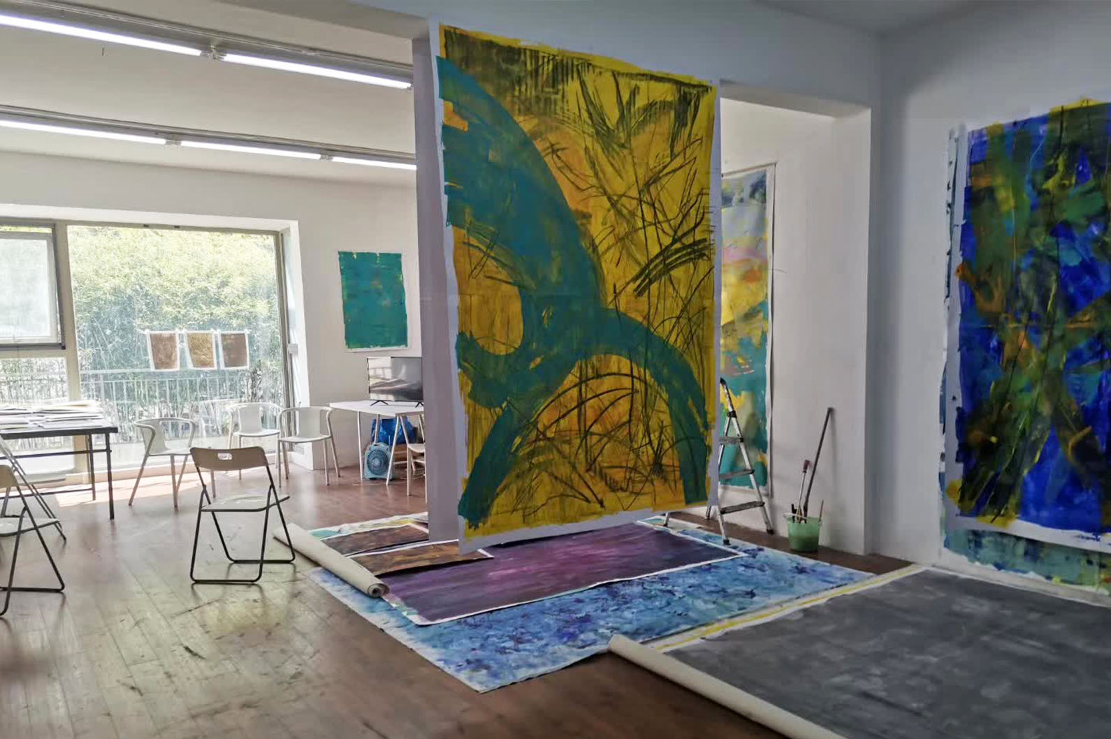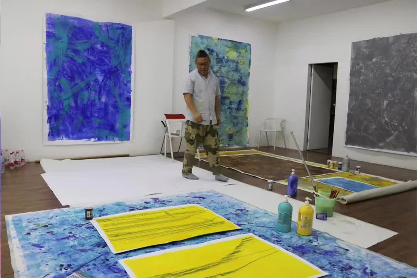 驻地也让他感觉像是一个在艺术创作旅途中的一个加油站,让他再次向前地去工作。许尤嘉近期作品关注比较多的是活在当下自身生活状态的那种感觉,比如生活里空气中的那个颜色、下雨天那个墙身、水在地板上的反光、可乐的甜味和空气中的味道,不同颜色的绿、茶里面有不同的颜色、纸张不同厚度的感觉、笔的大小和粗细。画画创作对于他来说是一个很自然的存在,画画就是画画,没有别的。