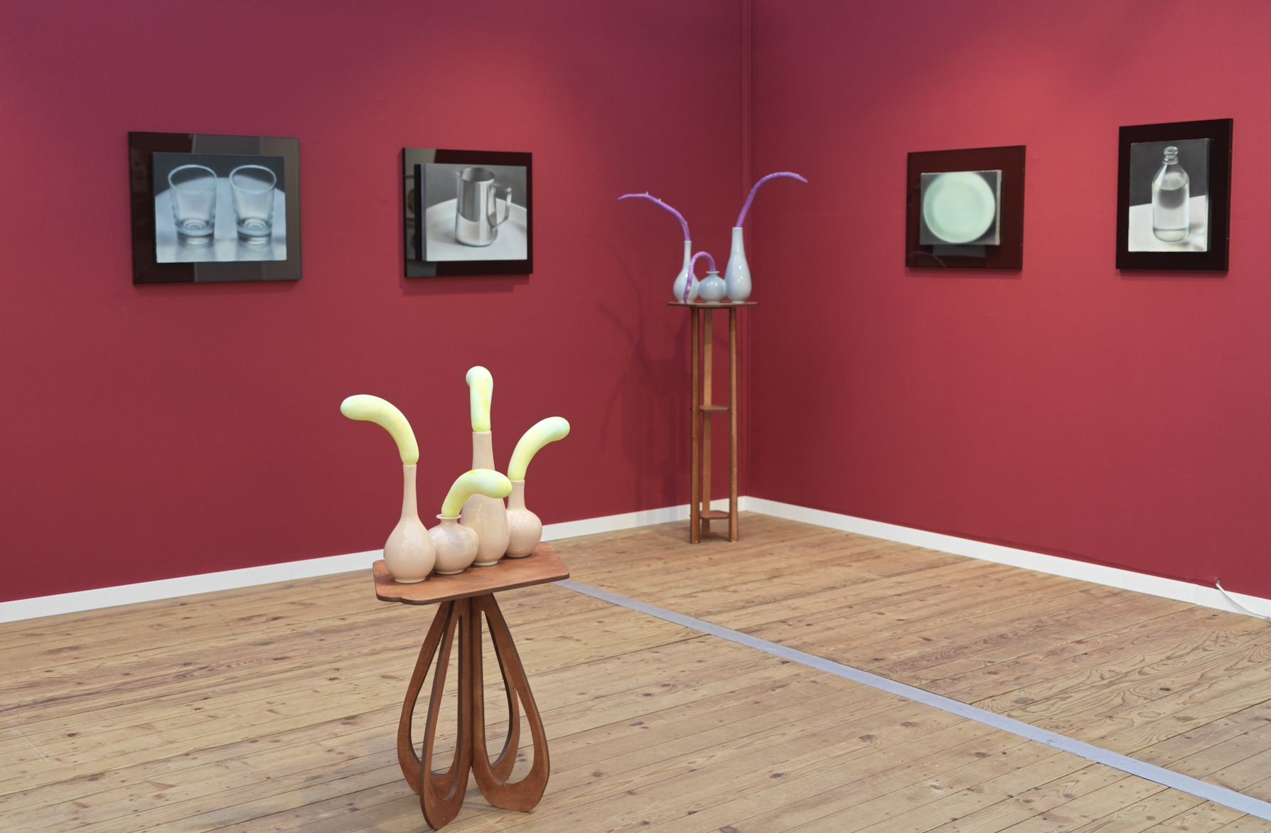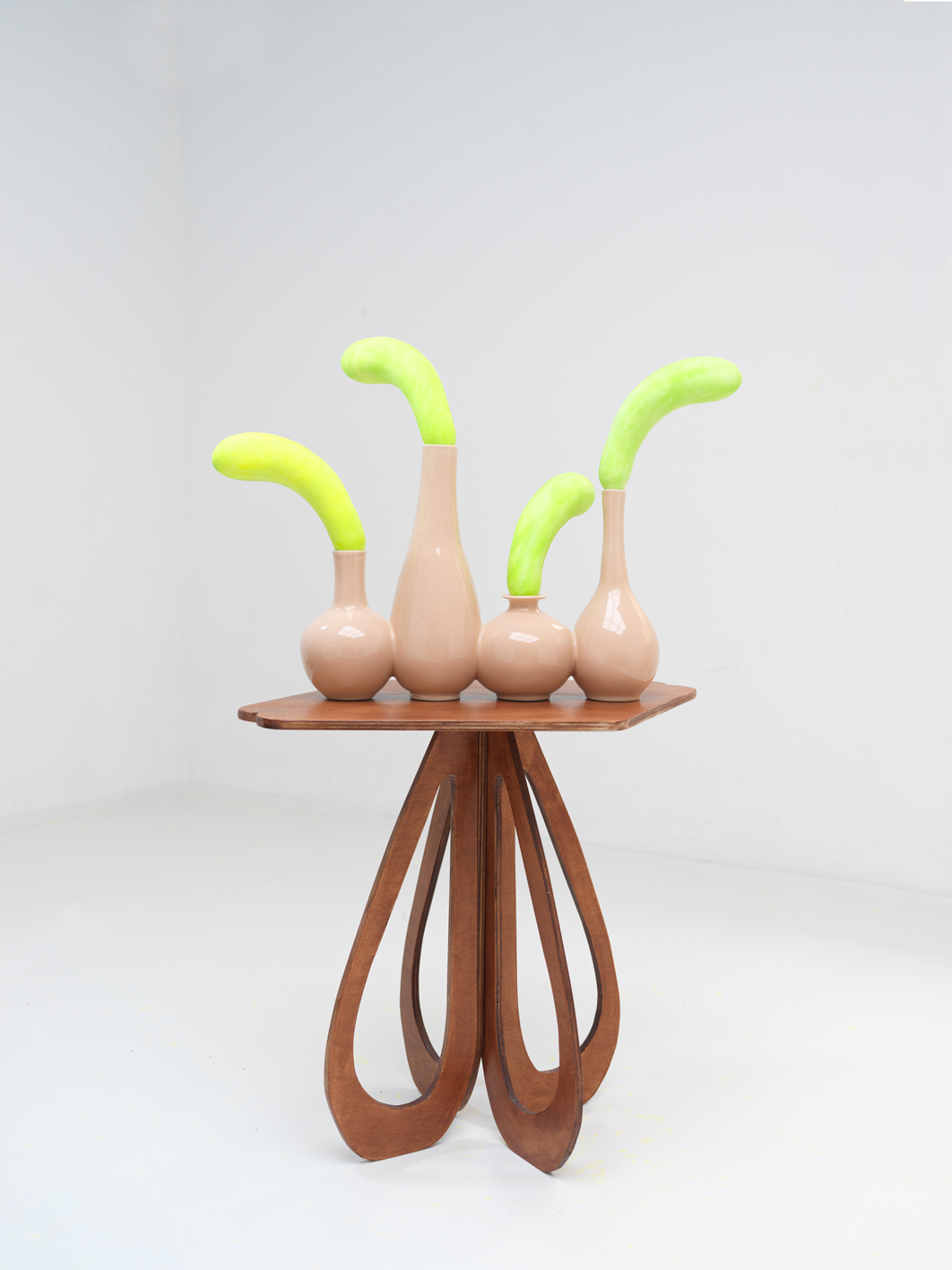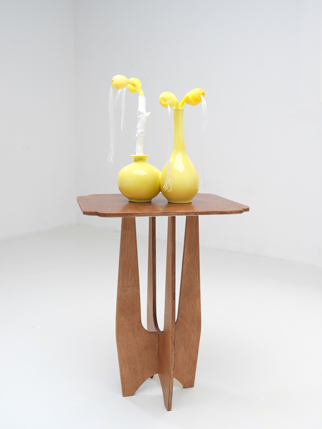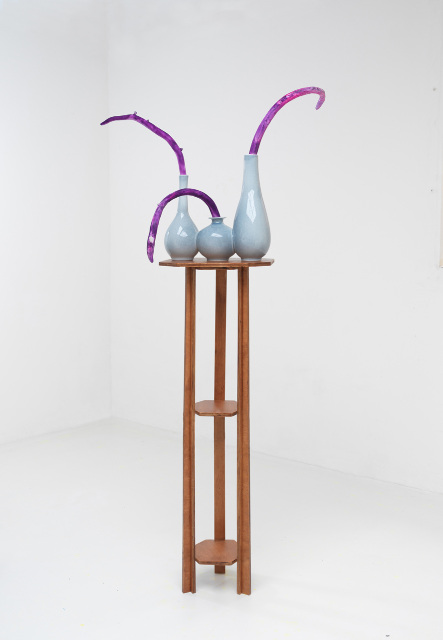 欧鸣的雕塑实践聚焦于对抽象的时间性以及对时间感知体验的物质化。他通过石膏、陶瓷、水等材料,试图构建视觉上与生命系统相呼应的结构。近年来,艺术家通过亲自种植作物、观察自然循环,进一步深化了对人作为中介介于自然之间的理解。他的作品,如以石膏为载体记录水迹的流动,或以陶瓷为“基地”模拟养分的循环,均试图将自然界的生长规律与人的内在体验物质化。其雕塑不是封闭的物体,而是处于变化中的开放系统,时间与空间在其中交织为可视的形式。
