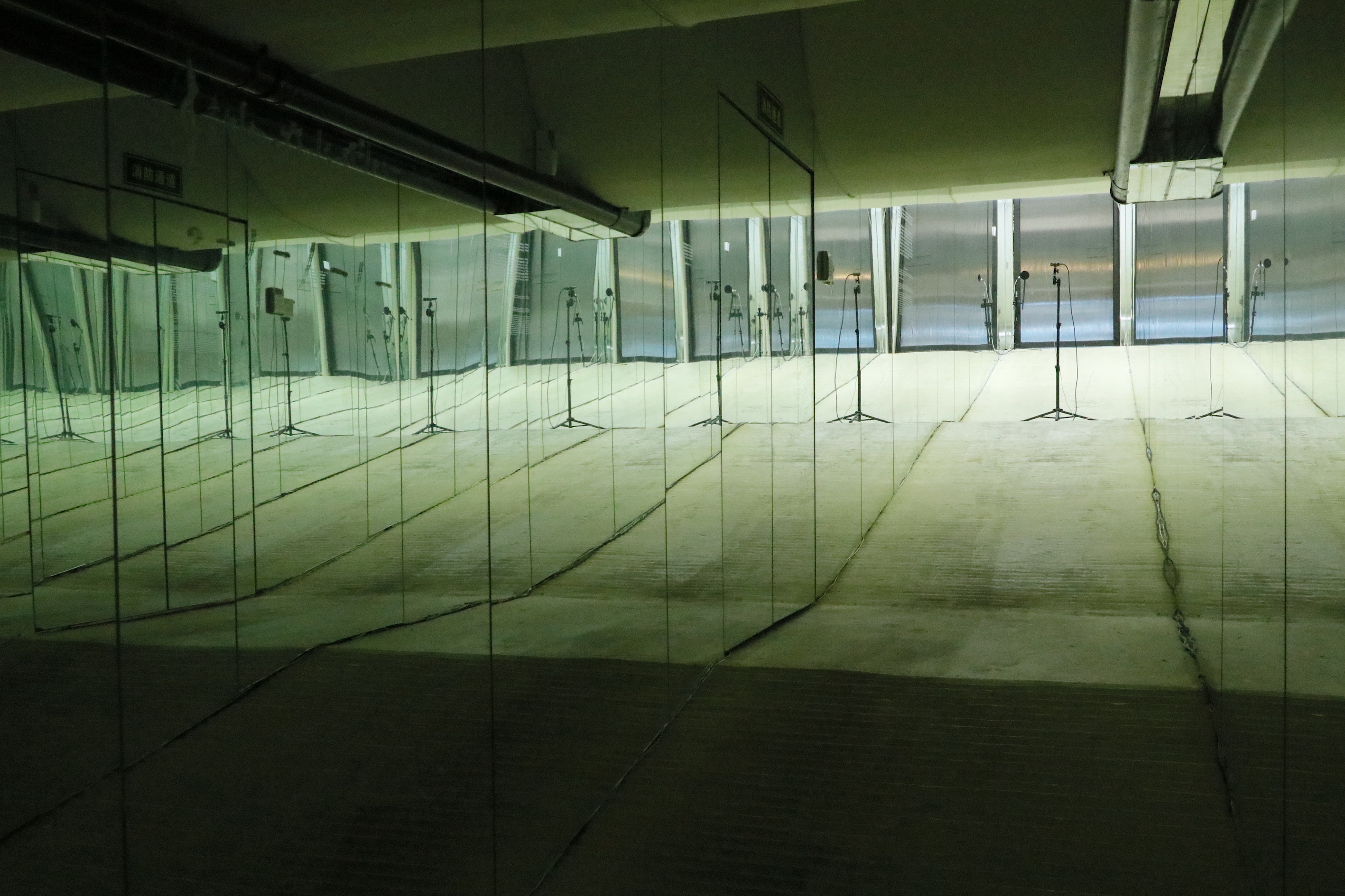 在第一期的Critique room艺术现场中,艺术家娄能斌与策展人姚斯青合作,带来为画廊的镜面长廊空间而创作的声音装置《宛在水中央》。作品的名称源于《诗经·蒹葭》中的名句,“所谓伊人,在水一方。溯洄从之,道阻且长。溯游从之,宛在水中央。”