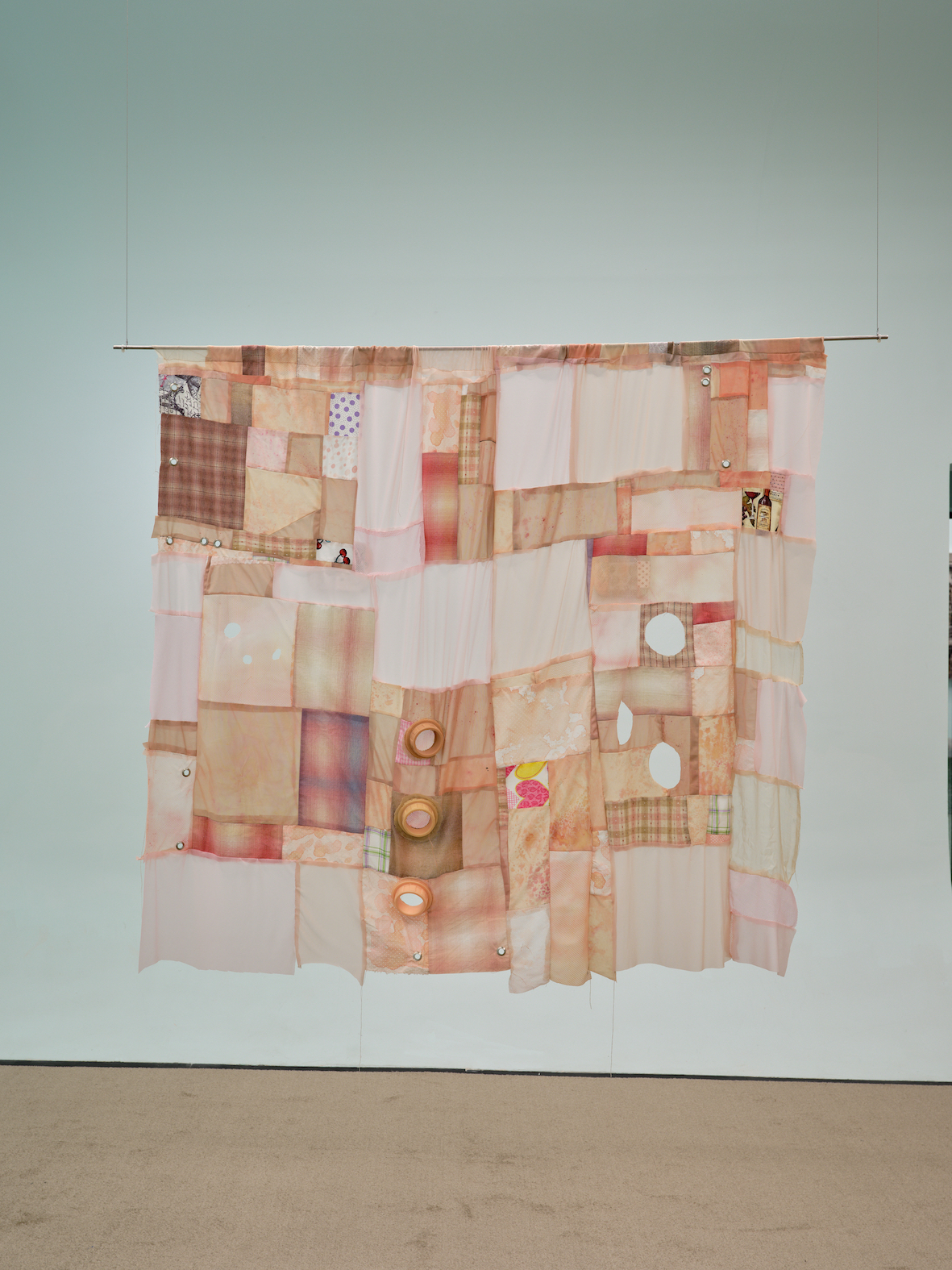 一直以来,王玉钰的创作媒介以雕塑为核心,并以此连接装置、行为、绘画等创作媒介。成体量系统的雕塑制作余料、草稿本里的散画、身体发肤所感知的每一处生活周遭中的细节都被转化,吸纳并融合进她的作品里。在其架上作品中大量使用的拼布工艺将时间、材料、观念和记忆碎片重新组合,时间差通过缝合佐证并重现了艺术家在创作过程中寻找并试图去捕捉的人类肉身所散发出的那些迷惑而混沌的气息。