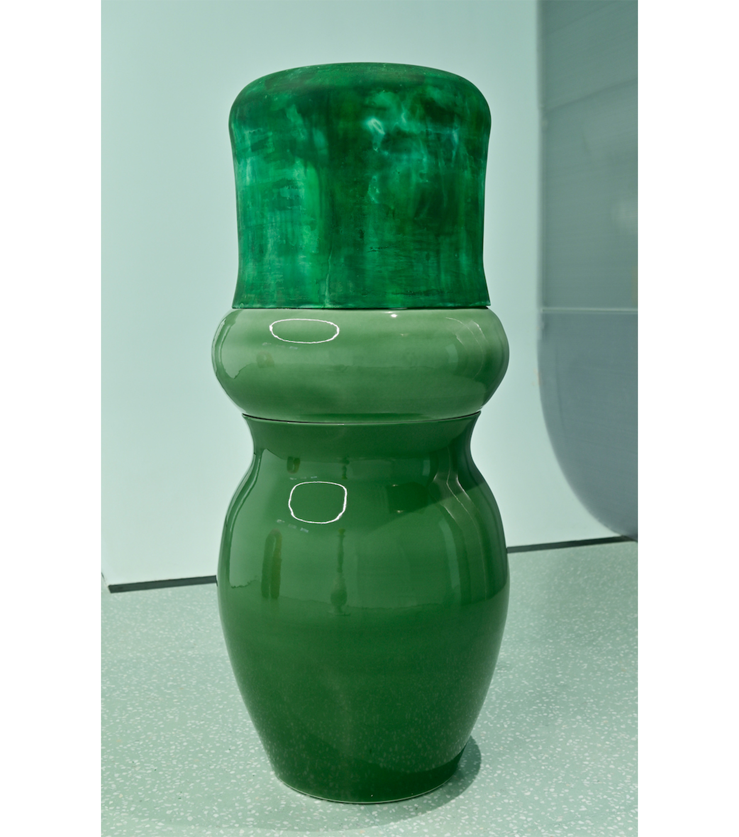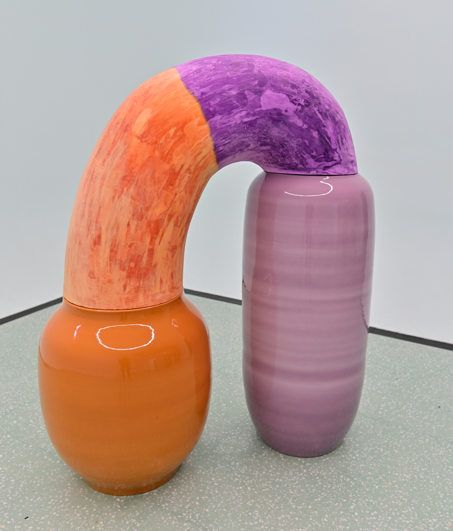《埃施》系列是欧鸣最近期的创作。此次展出的作品是《埃施8号》和《埃施11号》。当作品在湿水之后,表面鲜亮的颜色就会消失,而在水分收干的过程中颜色又会慢慢恢复到作品上。很显然,艺术家企图营造一系列不断变化,生长的实体,让作品一直处于变化之中,并被大家直观的感觉到,犹如花朵一样,生长,开放,凋零。